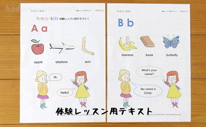 - hanaso kidsオリジナルの無料テキスト「Kids' English Start-up」