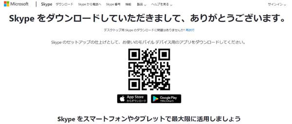 「Skypeをダウンロード」をクリック。すると、以下のような画面が開きます。